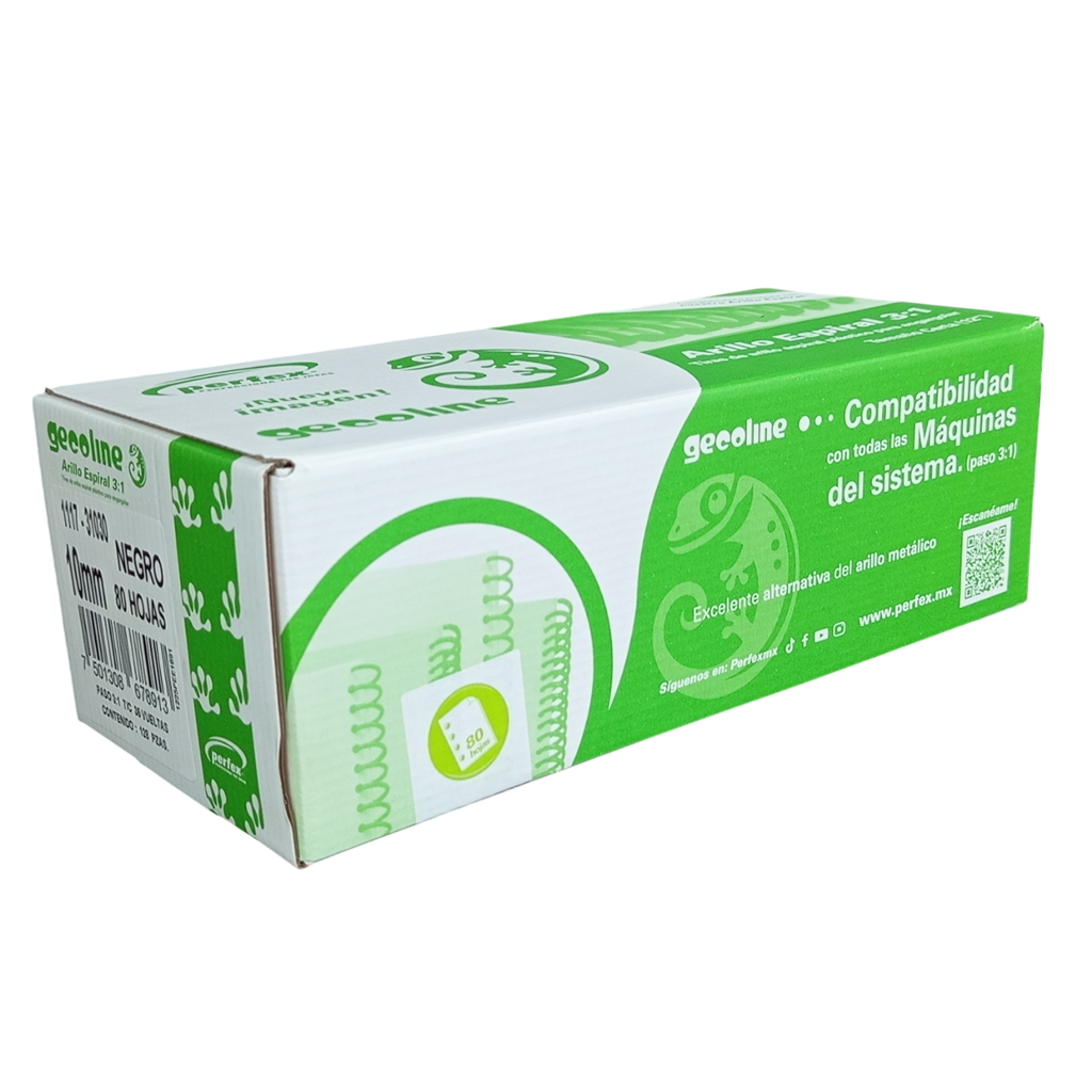 ESPIRAL PLASTICO 3:1 10MM C/128 TIRAS NEGRO CAPACIDAD 80 HOJAS 1111-31030 3/8