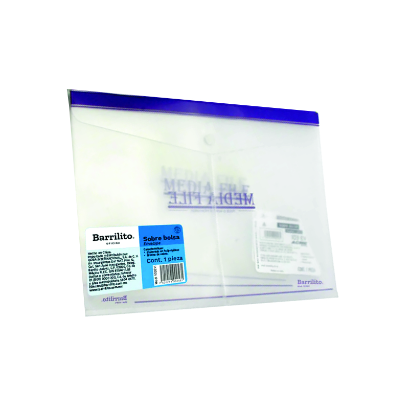 SOBRE PLASTICO 103EV T.CARTA TRANSP C/BROCHE DE VELKRO Y FRANJA DE COLOR EN LAPARTE SUPERIOR HORIZONTAL BARRILITO